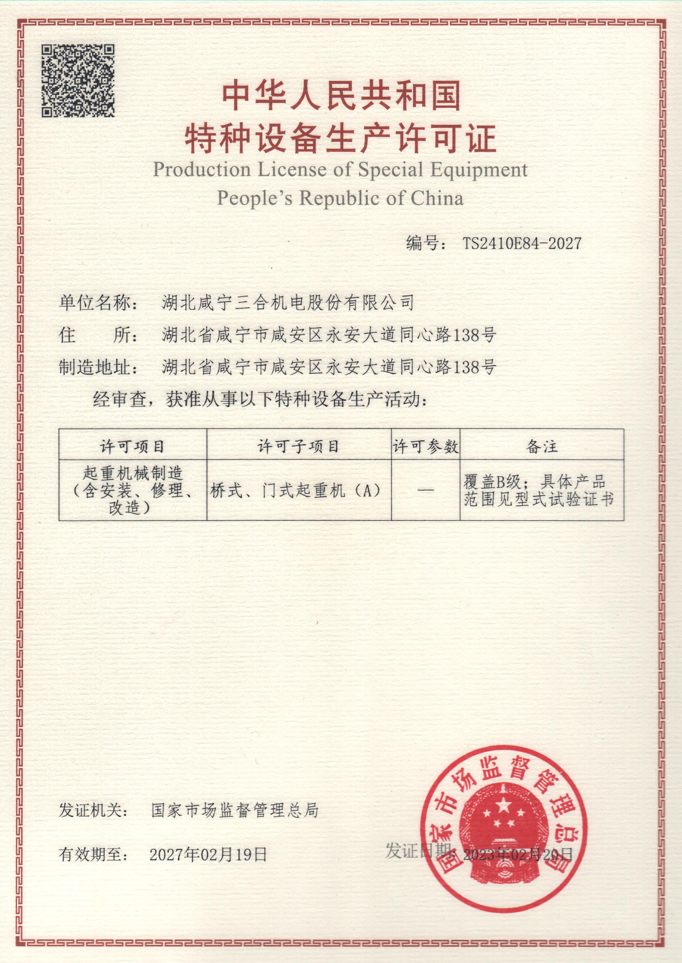 特種設(shè)備生產(chǎn)許可證